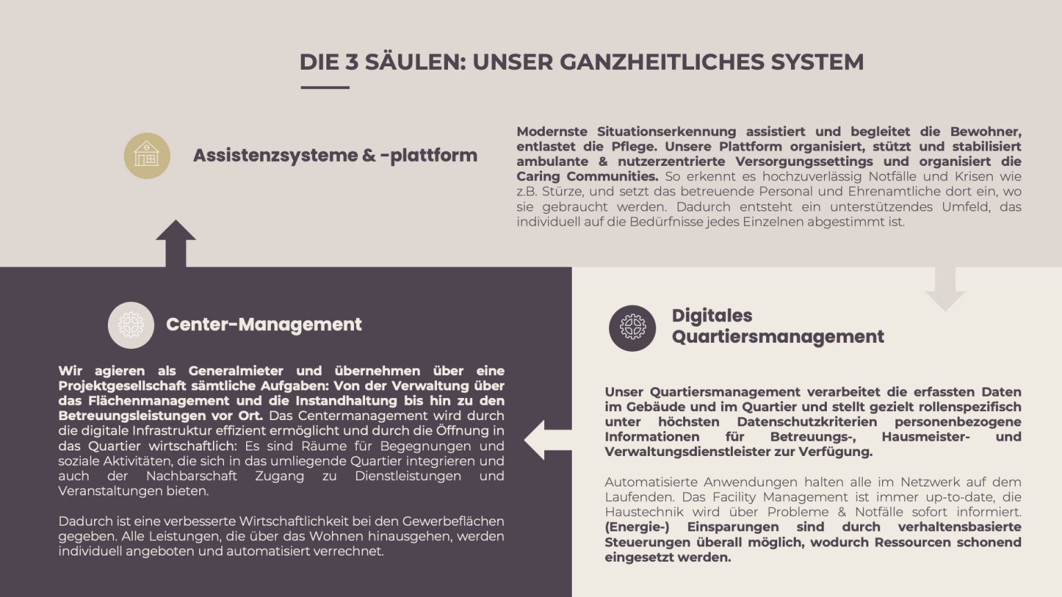 Wir schließen dadurch eine Angebotslücke: Wird Menschen ein Angebot zur Verbesserung ihrer Wohn- und Betreuungssituation gemacht, entlastet dies das öffentliche Pflegesystem und die familiären Strukturen. Insbesondere sorgen wir für ein normales Wohnumfeld, das Menschen das Altern mit hoher Lebensqualität in einem perfekt unterstützenden Umfeld ermöglicht.